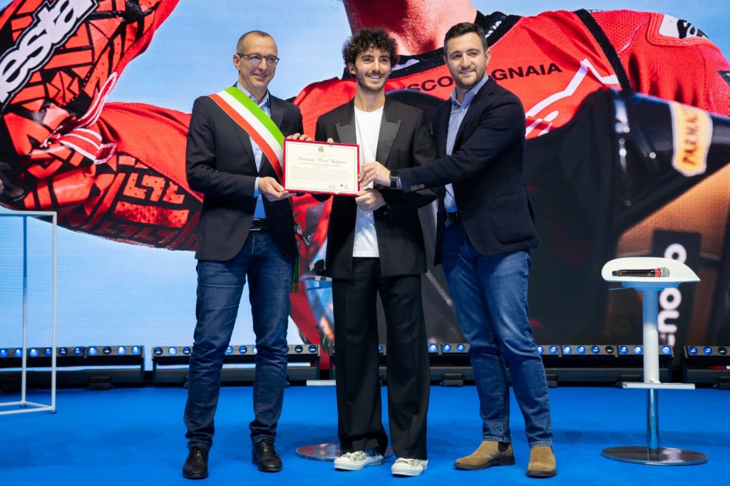 «La città abbraccia Pecco, il suo campione – afferma il presidente Marco Perugini –. Il sì all’unanimità dell’assise dimostra quanto sia grande l’orgoglio di avere Pecco a Pesaro. Abbiamo aspettato un anno per consegnare la cittadinanza benemerita – scherza – perché sapevamo che avrebbe vinto il secondo titolo nella classe regina». Nella delibera di consiglio per il riconoscimento assegnato ai “cittadini residenti a Pesaro che con opere concrete, anche nel campo dello sport, abbiano in qualsiasi modo giovato alla città, rendendone più alto il prestigio”, sono: “Cresciuto a Chivasso, comincia a farsi notare nelle categorie Minimoto e MiniGP, della quale diventa campione europeo nel 2009. Nel 2010 corre nel campionato mediterraneo 125 PreGP, concludendo secondo. Nel 2011 e nel 2012 prende parte al campionato spagnolo velocità, classificandosi al terzo posto finale, prima nella classe 125 e poi nella classe Moto3, ottenendo in ciascuna stagione una vittoria in gara. Esordisce nel motomondiale nel 2013 in Moto3, nel 2017 si trasferisce in Moto2 con lo SKY Racing Team VR46. Nel 2018 si aggiudica il campionato del mondo di Moto2, diventando il primo pilota della scuderia Sky Racing TeamVR46 a vincere un titolo mondiale. Nel 2019 l’esordio in Moto GP, nel 2021 passa nel team ufficiale Ducati chiudendo la stagione al secondo posto a 26 punti dal campione Fabio Quartararo su Yamaha. Nel 2022 si aggiudica il titolo di Campione del mondo divenendo il secondo italiano a vincere un titolo in MotoGP, 13 anni dopo l’ultimo conquistato da Valentino Rossi, riportando il titolo alla Ducati dopo 15 anni e diventando anche il quarto italiano a vincere il mondiale nella classe regina con una moto italiana