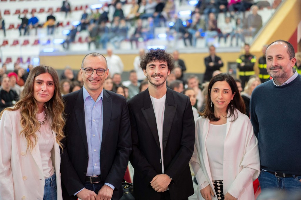 Nuvola Rossa ora è nuvola biancorossa. Francesco Pecco Bagnaia è ufficialmente cittadino benemerito di Pesaro. Ieri sera, all’Auditorium Scavolini, la cerimonia ufficiale di consegna del riconoscimento voluto dal sindaco di Pesaro Matteo Ricci e dal Consiglio comunale del Comune di Pesaro. «Un pilota straordinario, cresciuto nel team del nostro Valentino Rossi e che da tanti anni ha scelto di vivere a Pesaro». Due titoli mondiali di MotoGp, uno nella Moto 2, «è un grande talento, una bella persona, con i piedi per terra e sa che ogni giorno deve lavorare tanto – così Ricci -. Come noi gente di provincia, che per arrivare deve correre più degli altri, ma restando umile». Arrivato dieci anni fa a Pesaro, Francesco “Pecco” Bagnaia, che si è poi raccontato in un’intervista al giornalista di Sky Sport Mauro Sanchini, dice «amo questa città, amo i pesaresi, qui ho tutto. Quando dico “vado a casa” per me ormai è Pesaro. Grazie».