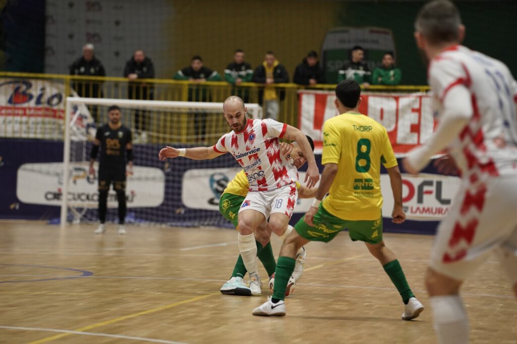 LA CRONACA – Primi minuti con i padroni di casa arrembanti, che colpiscono due legni e poi sbloccano il match con la rete di Stigliano al 7′. Reazione rabbiosa dell’Italservice, che da qui in avanti si prende la scena per 30 minuti effettivi di fila. Prima Schiochet colpisce un palo clamoroso, poi lo stesso numero 21 biancorosso pareggia i conti con un sinistro vincente dal limite. Putano poco dopo replica alla grande ad una botta ravvicinata, quindi tante conclusioni e chance per l’Italservice. Ci provano in serie Mohabz, Juan Fran, Tonidandel e Barichello. Ma la mira non è perfetta e al riposo si va sull’1 a 1.