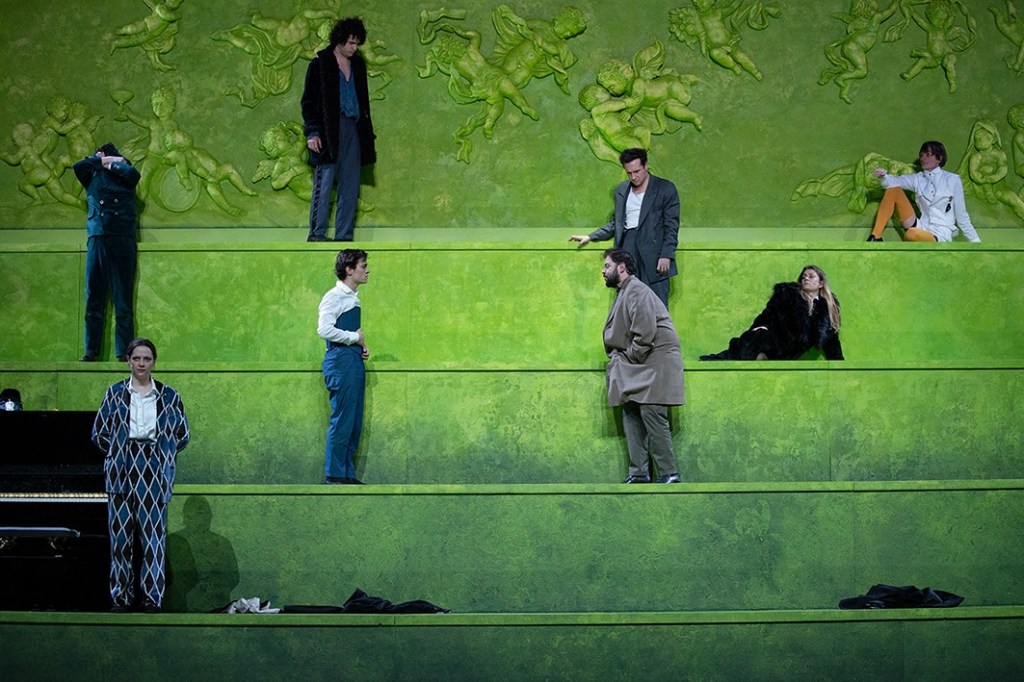 La traduzione del testo è a cura di Federico Bellini, in scena ci sono gli attori Giuseppe Aceto, Alessandro Bandini, Michelangelo Dalisi, Giovanni Drago, Sebastian Luque Herrera, Anna Manella, Alberto Marcello, Francesca Osso, Aurora Spreafico. Le scene sono di Paolo Di Benedetto, i costumi di Margherita Baldoni, le luci di Fabio Bozzetta e progetto sonoro di Franco Visioli. L’assistente alla regia è Alice Sinigaglia, mentre l’assistente scenografo è Andrea Colombo. La produzione è LAC Lugano Arte e Cultura,in coproduzione con Fondazione Luzzati Teatro della Tosse, Centro D’arte Contemporanea Teatro Carcano e Associazione Culturale Arca Azzurra. Il partner di ricerca è Clinica Luganese Moncucco.