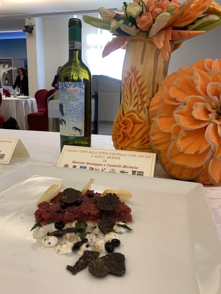L’istituto Ugo Mursia di Carini (PA), con il “Falso cono alla stracciatella con cacao, perle e scaglie di cioccolato“, abbinato a un Verdicchio dei castelli di Jesi classico riserva Docg “Rincrocca” 2020, La Staffa e all’ouverture da La Cenerentola.