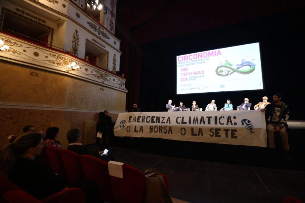 Le Marche risultano la regione con la migliore prestazione di sostenibilità ambientale. E’ quanto emerge dal Rapporto presentato a Fano, sabato 9 marzo, a Teatro della Fortuna, in occasione di Circonomia, il Festival dell’economia circolare e della transizione ecologica promosso tra gli altri da Eprcomuniczione e Kyoto Club. Il Rapporto, curato da Duccio Bianchi fondatore dell’Istituto di ricerche Ambiente Italia (il più antico eco-istituto italiano), propone un ranking che mette in classifica le regioni italiane sulla base di un set di 25 diversi indicatori green. Le Marche, che pure sono una delle regioni più manifatturiere d’Italia, si legge nel rapporto, e dunque con la presenza più rilevante di attività economiche che producendo beni fisici consumano più risorse e più energia rispetto alle attività economiche “terziarie”, svettano in testa alla classifica, superate solo dal Trentino Alto Adige che vanta un’antica e consolidata “primazia” in fatto di attenzione all’ambiente. Il risultato delle Marche è migliore di quello medio dell’Italia in 20 indicatori su 25. Durante la presentazione del Rapporto, con il vice direttore di QN Davide Nitrosi, e con gli interventi dell’assessore alla Cultura Cora Fattori, di Stefano Aguzzi, assessore regionale all’Ambiente, di Roberto Della Seta Giornalista e Direttore di Circonomia, dell’Università Politecnica delle Marche, di Elena Viganò Prorettrice dell’Università degli Studi di Urbino Carlo Bo e Claudio Avaltroni presidente di Enereco, un gruppo del movimento di Extinction Rebellion hanno interrotto il corso dei lavori con canti e occupato il palco con uno striscione per circa mezz’ora, poi i lavori sono proseguiti come da programma.