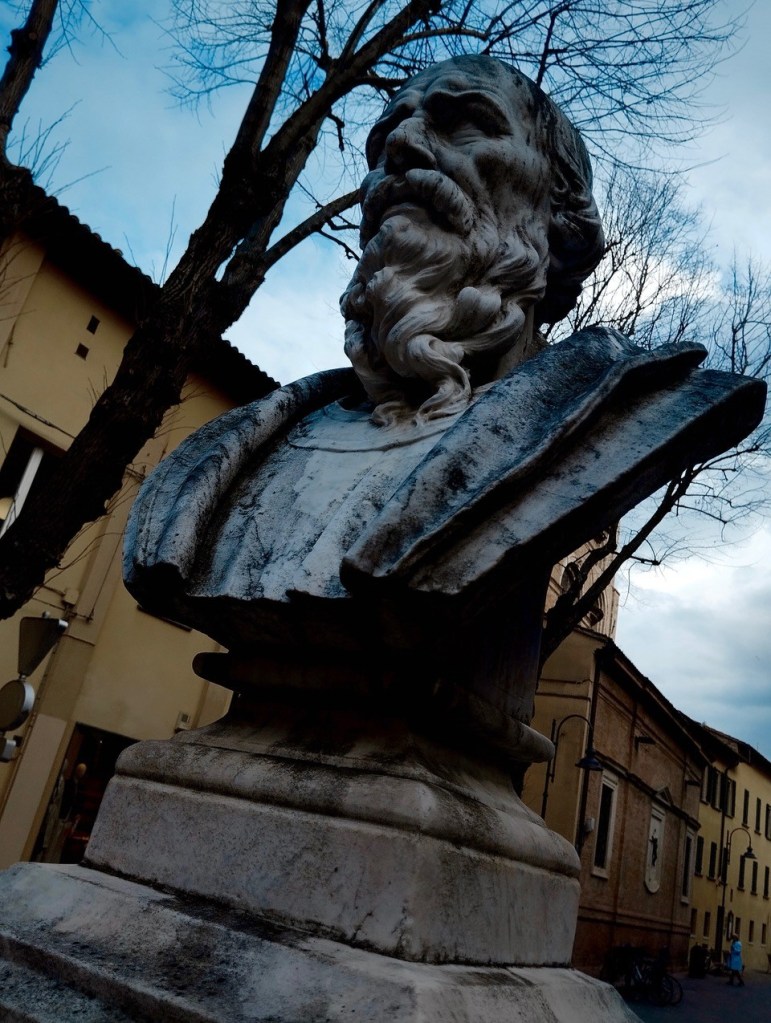 Ma chi era Pandolfo Collenuccio (1444-1504)? Era un umanista e poeta italiano del Rinascimento, celebre per le sue opere letterarie e storiche. Dopo aver svolto importanti incarichi politici e diplomatici, fu imprigionato e costretto all’esilio dal signore di Pesaro, Giovanni Sforza, a causa di contrasti politici. Successivamente, tornò a Pesaro con la protezione di altri governanti, ma Giovanni Sforza, tramando contro di lui, lo fece imprigionare, torturare e uccidere senza processo. La sua tragica morte simboleggia il coraggio e lo spirito indipendente di un essere umano, di un pensatore, di fronte all’arroganza e alla spietatezza del potere.