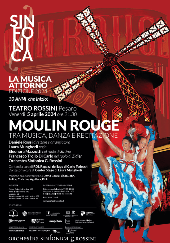 Il 05 aprile a Pesaro e il 7 aprile a Cattolica andrร in scena il ๐ ๐๐๐ถ๐ฐ๐ฎ๐น prodotto dallโOrchestra Sinfonica G. Rossini, dopo il successo riscosso da โFameโ nel 2023: stavolta sarร il ๐ ๐ผ๐๐น๐ถ๐ป ๐ฅ๐ผ๐๐ด๐ฒ parigino ad essere protagonista. La storia dโamore tra Christian e Satine, il pittore Toulouse-Lautrec, le ballerine del locale di Parigi piรน famoso e frequentato, in cui ebbe i natali il celeberrimo can-can sono ingredienti di sicuro successo per un riadattamento del musical del 2018 su libretto di John Logan.