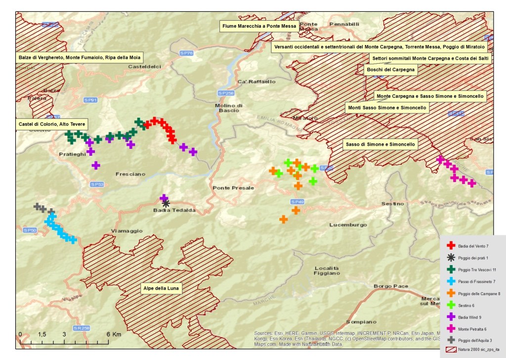 Le pale eoliche pur essendo posizionate tutte nel comune di Sestino sono a