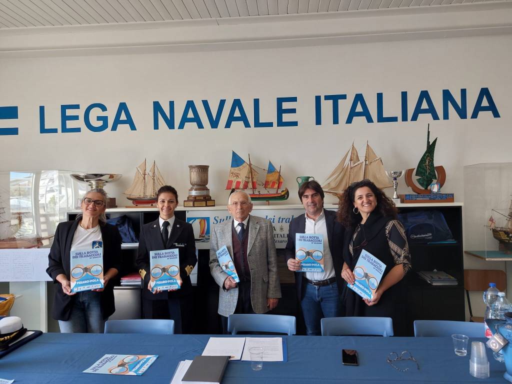 Nelle foto, insieme al presidente Antonio Rossini, al vice presidente del Consiglio regionale Andrea Biancani e al capitano di fregata Clarissa Torturo ci sono Luciana Forlani, delegata scolastica regionale per la Lega Navale Italiana e Giovanna Forlani, insegnante di progettazione che ha collaborato al progetto con la scuola del Libro di Urbino.