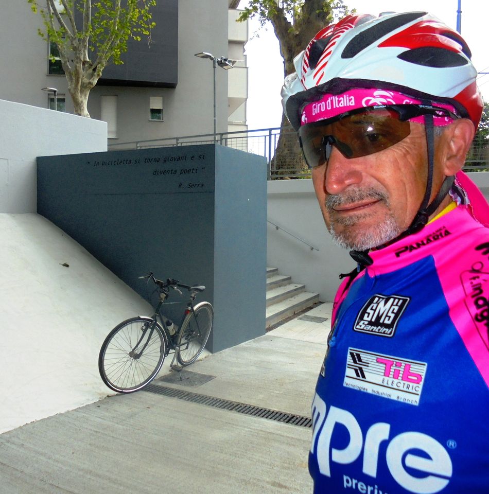 ma in bicicletta. Era un fan del giro d’Italia e durante il passaggio di una tappa a Cesena, si accodò per un tratto al gruppo dei corridori.