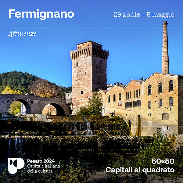 Dal 29 aprile al 5 maggio è il Comune di Fermignano il nuovo protagonista di ‘50×50: Capitali al quadrato’, il progetto simbolo di Pesaro 2024 che vede i cinquanta Comuni della Provincia di Pesaro e Urbino, a turno, Capitale per una settimana lungo il 2024; special partner ‘50×50 Capitali al quadrato’ Banca di Pesaro – Credito Cooperativo. Il programma – dal titolo Affluenze – propone una ricca serie di attività tra natura e cultura realizzate con il contributo di Fondazione Cassa di Risparmio di Pesaro. Tra i ‘luoghi’ coinvolti spiccano la Riserva Naturale Statale della Gola del Furlo e l’ex Lanificio Carotti – con la sua magnifica architettura ora centrale di produzione idroelettrica -, sedi che testimoniano in modo perfetto la storia e l’identità di Fermignano.