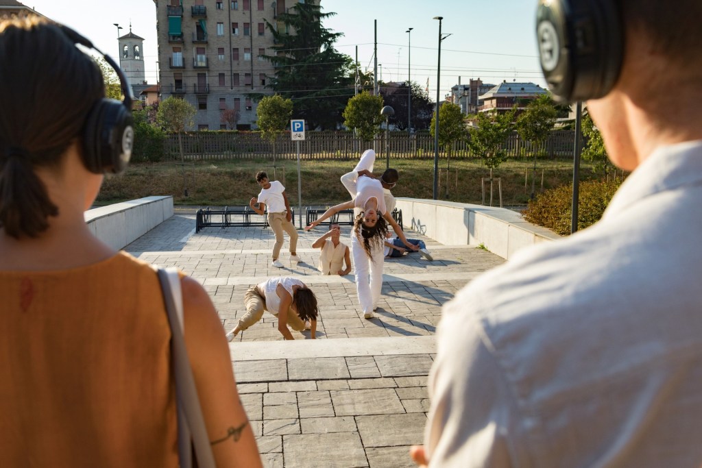 Il lavoro nasce con l’obiettivo di non essere mai veramente ripetibile, rinascendo ogni volta nell’identità e nella natura del luogo che lo ospita, entrando in connessione con la sua storia, i suoi segreti, i personaggi che lo abitano o lo hanno abitato. Un piccolo gruppo di spettatori, rigorosamente con la musica in cuffia e accompagnati da un testo che introduce e contestualizza lo spazio della performance, segue i danzatori, trovandosi ad essere, inconsapevolmente, parte del disegno coreografico.