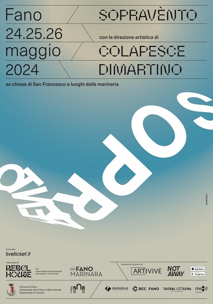 Nella marineria con il termine sopravénto si identifica tutto quello che si trova dalla parte da cui spira il vento – riferito alla posizione di chi osserva – nella meteorologia si tratta della parte più esposta al rischio precipitazioni, nel nostro caso specifico si tratta di tutto quello che succederà in due giorni di musica e incontri in diversi luoghi marinari e culturali di Fano di cui quello principale sarà l’ex chiesa di San Francesco, quando a prendere il sopravvento saranno le emozioni e ciascuno di noi sarà esposto al “rischio” delle relazioni: quando il mare dialogherà con il centro storico, i marinai saranno di ritorno e il richiamo delle sirene sarà una canzone.