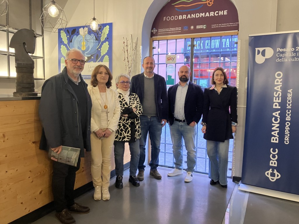 Alla conferenza stampa erano presenti: Daniele Vimini presidente Fondazione Pescheria Centro Arti Visive; per Belforte all’Isauro, Federica Battazzi assessore alla Cultura del Comune, Cristina Torcolacci presidente dell’associazione ‘La Ginestra’, Agnese Mezzanotti titolare blog e negozio ‘Mamivintage’, Filippo Piscaglia vicepreside dell’Istituto Comprensivo “Evangelista” di Piandimeleto, Paolo Cesaretti consigliere di Food Brand Marche, realtà che raccoglie tutti i consorzi tutela dei prodotti enogastronomici marchigiani e coordinatore del consorzio di tutela della Casciotta d’Urbino, il sommelier Otello Renzi.