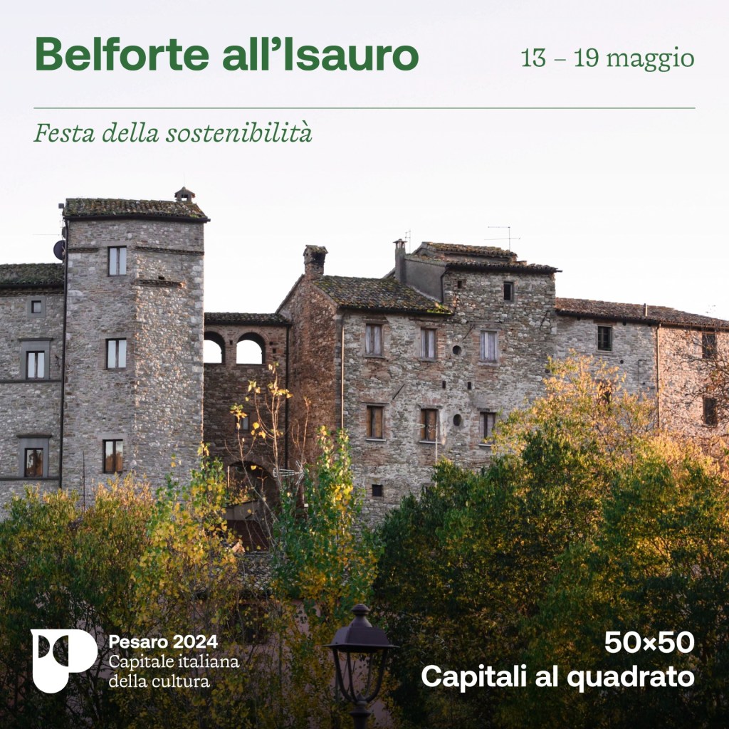 Dal 13 al 19 maggio è il Comune di Belforte all’Isauro il nuovo protagonista di ‘50×50: Capitali al quadrato’, il progetto simbolo di Pesaro 2024 che vede i cinquanta Comuni della Provincia di Pesaro e Urbino, a turno, Capitale per una settimana lungo il 2024. Il programma – dal titolo ‘Festa della Sostenibilità’ – propone una ricca serie di attività per tutti – spazio anche ai più piccoli – tra natura, artigianato, musica, danza, benessere e buon cibo.