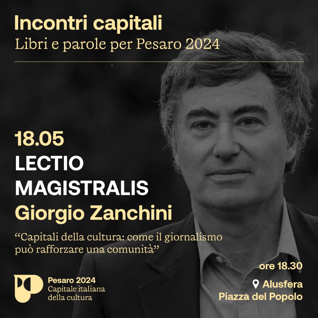 Come si comunica la cultura e in che modo l’informazione può contribuire alla conoscenza? Ne parlerà a ‘Incontri capitali’ il giornalista e saggista Giorgio Zanchini con una lectio magistralis dal titolo ‘Capitali della cultura: come il giornalismo può rafforzare una comunità’. L’appuntamento è sabato 18 maggio a Pesaro nell’Alusfera di piazza del Popolo (ore 18.30).
