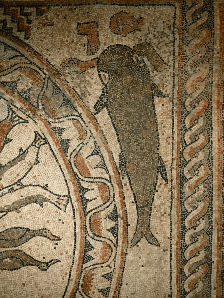 Eppure, lo squalo, feroce predatore marino, rimase una presenza insolita nell’immaginario cristiano almeno fino al XV secolo. È questo che rende il mosaico di Pesaro, risalente all’XI secolo, un vero gioiello iconografico.