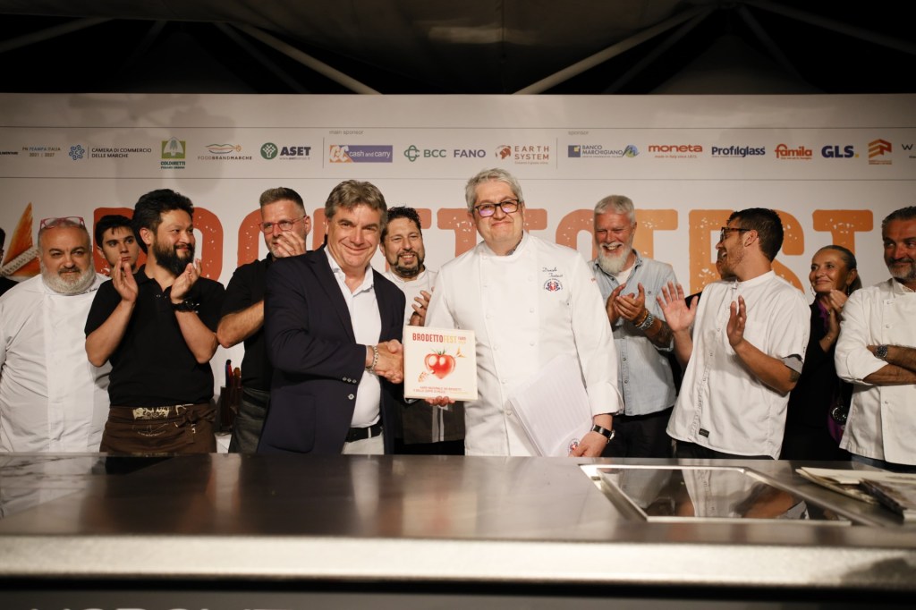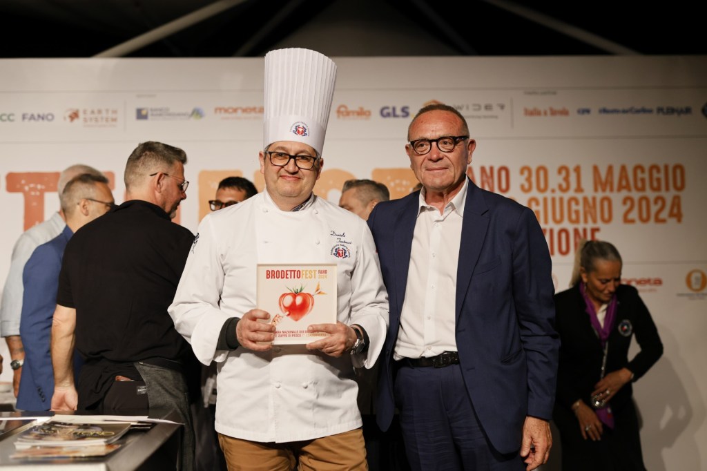 La Regione Marche esulta al Palabrodetto con lo chef Daniele Tantucci che vince la Gara Nazionale dei Brodetti e delle Zuppe di Pesce. Il brodetto all’anconetana si aggiudica il premio come Migliore Zuppa di Pesce Italiana del 2024. A decretare il suo successo sono stati i voti della giuria popolare composta dagli ospiti dei 4 turni di gara e le valutazioni della giuria tecnica composta dal gotha della critica enogastronomica italiana: Alberto Lupini, giornalista ed opinionista gastronomico, direttore di Italia a Tavola – Igles Corelli, Chef insignito di 5 stelle Michelin e volto noto di Gambero Rosso Channel – Nicola Dante Basile, giornalista, scrittore e curatore del blog “Terra Nostra” de ilsole24ore.com.