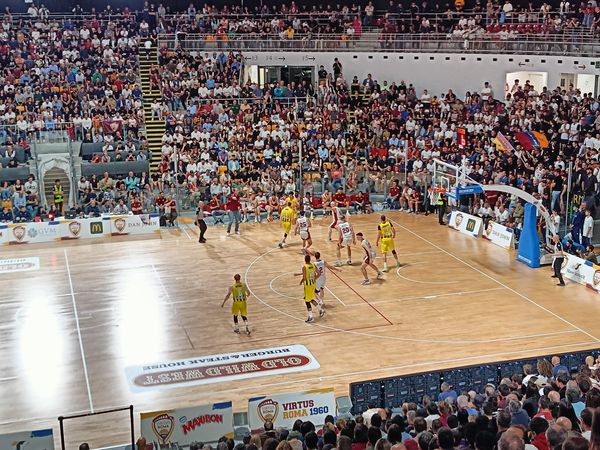 𝐏𝐀𝐋𝐀𝐒 𝐈𝐍𝐅𝐔𝐎𝐂𝐀𝐓𝐎 – Si è giocato nella bolgia del PalaTiziano di Roma, di fronte a ben 3600 spettatori che hanno infuocato l’ambiente e trascinato i giallorossi di casa, soprattutto nei momenti più delicati del match. Perché Loreto ne ha creati diversi di grattacapi alla Virtus, eccome. Soprattutto nel secondo quarto.