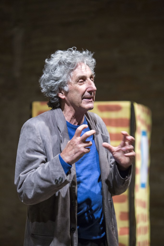 Il testo di Kafka, opera satura di infelicità e poesia, continua ancora oggi a farci riflettere sul tema della colpa primordiale e di come questa possa indurre inevitabilmente l’individuo, vittima innocente, a una condanna. L’intera performance è costruita come una macchina che si avvicina sempre più al corpo dell’imputato. Gli altri personaggi del tribunale immaginario, come in una caccia forsennata, si muovono dentro a una serie di vortici e cerchi concentrici.