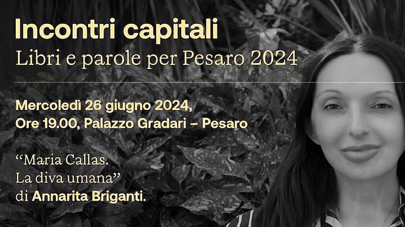 La vita di Maria Callas, sul palco e nella vita privata, i suoi amori, i successi, il desiderio di maternità, la sua umanità di donna e di artista: è un ritratto appassionato quello che ci restituisce della diva della lirica la giornalista e scrittrice Annarita Briganti nel suo libro ‘Maria Callas. La diva umana’ pubblicato da Cairo Editore. L’autrice ne parlerà mercoledì 26 giugno a Pesaro nell’ambito della rassegna ‘Incontri capitali’ in una conversazione con la giornalista Elisabetta Rossi (Palazzo Gradari, ore 19).