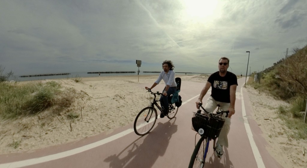 Così, ad esempio, Rossini onnipresente e la sua musica, servono come spunto per conoscere due cantanti russi, moglie e marito, che vivono da cinque anni a Pesaro tra tante difficoltà e cantano spesso anche nelle piazze. Rosetta, invece, è un’affermata regista teatrale pesarese che lavora ormai prevalentemente all’estero, ma che ha mosso i primi passi giovanissima proprio sul palco del Rossini Opera Festival. Allo stesso modo l’arte è anche quella di Roberto, un settantenne pesarese che ama la pittura e crea le sue opere usando sassi e conchiglie raccolte nella spiaggia, oppure quella di Simone “Garben”, ex impiegato che perso il lavoro ha deciso di dedicarsi al suo grande sogno: diventare un clown ed esibirsi come “artista al cappello”. Altra storia è quella di Francesca, una body-painter che, dopo una brutta esperienza, cerca di esprimere il senso della rinascita e della positività attraverso le sue opere. E infatti per molti Pesaro è diventata il luogo dove vivere dopo un’esperienza non positiva o dove realizzare i propri sogni. Come Giovanni, premiato anni fa come miglior giovane economista europeo per la Green Economy e che, dopo aver lavorato in varie università, ha trovato qui la realtà perfetta per mettere in pratica ciò che studia e insegna, in particolare la mobilità su due ruote grazie alla “bicipolitana’. Giacomo, invece, è un pilota di moto che ha fondato una squadra corse animalista: i proventi degli sponsor gli servono infatti a sostenere le spese per una serie di canili e gattili sparsi in tutta Italia. Domenico è rinato molte volte: negli anni ‘70 è uno dei rappresentanti del settore mobili a livello nazionale ma decide di cambiare vita e aprire un ristorante in Lombardia che in due anni diventa stellato; lasciato il ristorante si appassiona di biliardo e inventa una stecca speciale venduta in tutto il mondo, poi torna al settore della ristorazione e infine a 78 anni compra una barca a vela per cucinare e navigare lungo la costa pesarese. Altre storie sono quella di Walter Magnifico, uno dei giocatori di basket più forti di sempre, che ha scelto di vivere qui integrandosi in maniera perfetta con la città; o ancora quella di Peppino, documentarista, poeta e artista, che ha vissuto parte della sua infanzia nel famoso Collegio Zandonai, il luogo che per oltre 30 anni ha accolto orfani, profughi e bambini poveri da tutta Italia.