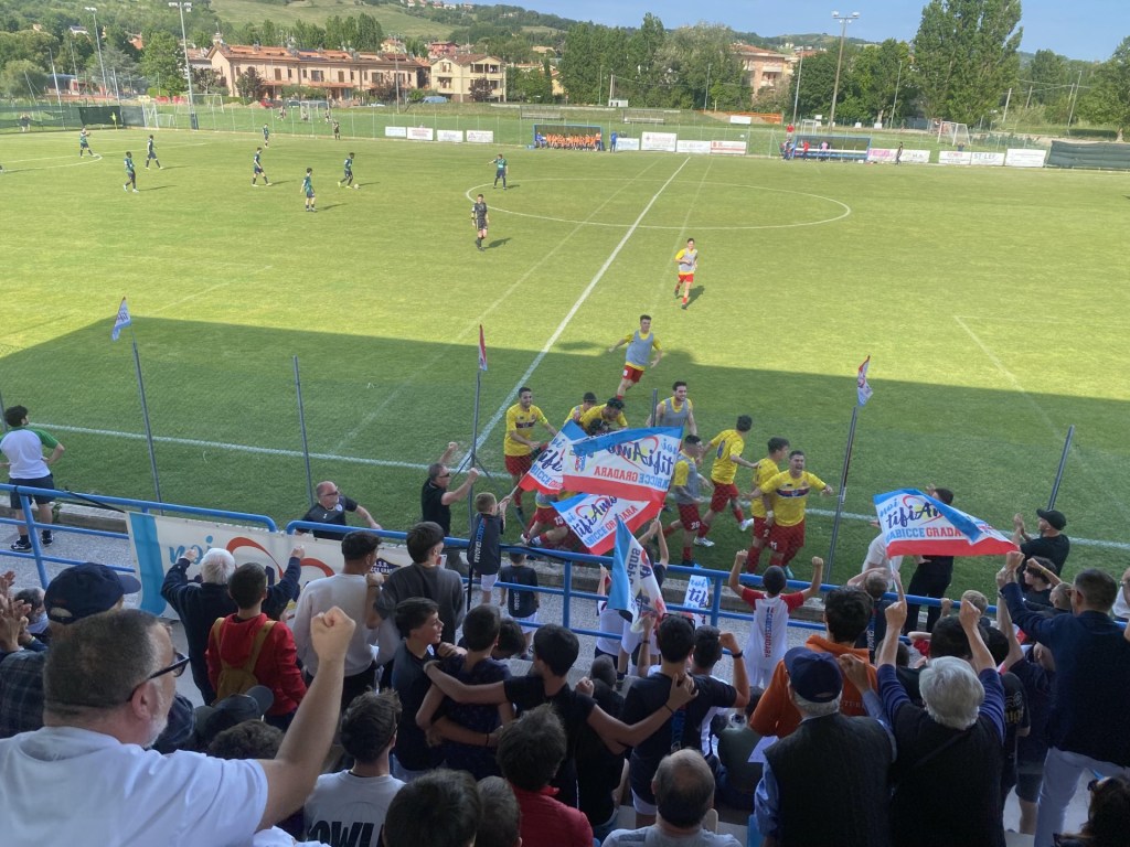 Nella foto: Tommaso Costantini (primo a destra) esultante dopo il gol all’Osimo Stazione