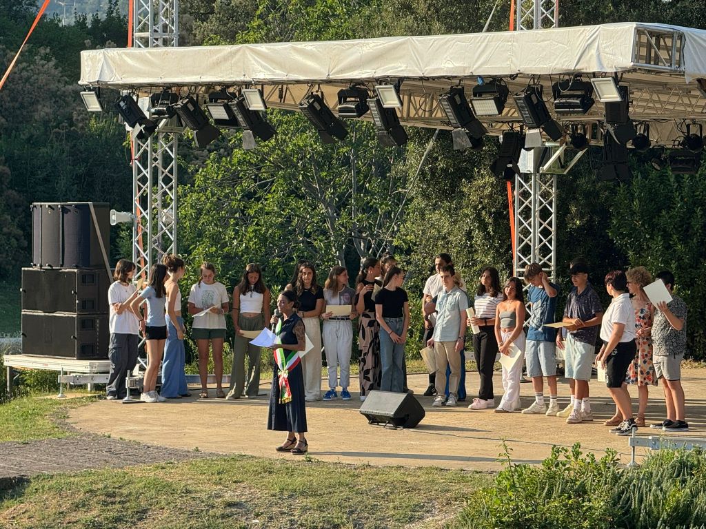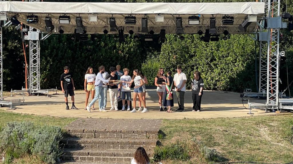 | Si è svolta nell’arena del Parco Miralfiore la cerimonia di premiazione delle “eccellenze” della scuola secondaria di primo grado della città, 129 in totale, a cui l’Amministrazione ha consegnato un attestato di riconoscimento che riporta una parte del testo di “Sogna, ragazzo, sogna” di Roberto Vecchioni, canzone simbolo e amatissima dagli studenti di ogni generazione.«Una bellissima giornata per tutte le classi terze della città – ha detto Camilla Murgia, assessora alle Politiche giovanili – che anche quest’anno abbiamo deciso di organizzare per vivere insieme la cerimonia di passaggio alle scuole superiori e per riconoscere e premiare le eccellenze, 129 ragazzi della nostra città che sono usciti dall’esame con 10 e 10 e lode. Ma è soprattutto un momento di festa per tutte e per tutti che abbiamo voluto arricchire con una sorpresa: l’intervento di Davide Scavolini, cantautore pesarese, esempio di resilienza e creatività, che abbiamo voluto condividere con famiglie e con studenti per guardare insieme al futuro che auguro a tutti quanti possa essere il più roseo possibile».Presenti all’iniziativa circa 1000 tra alunne e alunni di tutte le classi terze di Pesaro a cui il Comune, grazie ad Aspes e Garden Florio, ha distribuito dei sacchetti di semi «come auspicio di crescita, un piccolo pensiero per un futuro fiorito», precisa Murgia.A partecipare, tra gli altri anche Alessandra Belloni, dirigente Ufficio Scolastico Regionale per le Marche – Ufficio VI Ambito territoriale di Pesaro e Urbino,Patrizia Paoloni per la Provincia di Pesaro e Urbino, il sindaco di Mombaroccio Emanuele Petrucci (Comune che accoglie una delle sedi dell’I.C. Pirandello) che si sono congratulati con le ragazze e i ragazzi da 10 e 10 e lode. Comune di Pesaro |