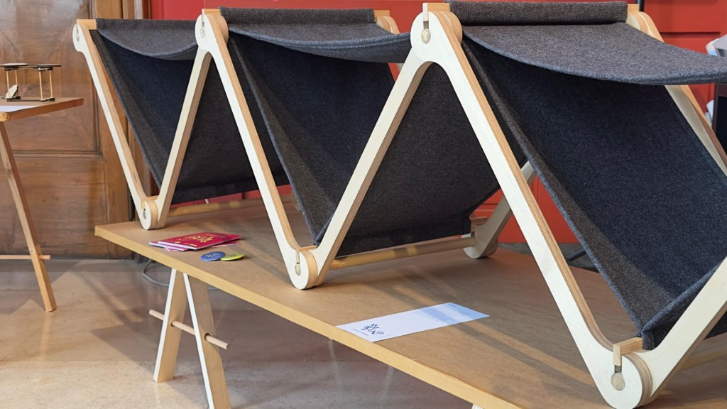 Ha aperto Silvano Straccini: questo è un progetto di dossier, l’elemento generativo da cui partono tutte le iniziative ed esplodono tutte le connessioni. Per noi questo è uno dei progetti più belli sia dal punto di vista contenutistico che di processo perché l’esito è un sistema di arredo che funziona da connessione territoriale a tanti livelli: l’Università di San Marino e l’istituto Bramante Genga e la comunità tutta. L’obiettivo era la creazione di una progettazione tipo in cui il risultato fosse il processo stesso. Da cui potesse nascere un elemento iconico che possa rappresentare l’unione tra istituti formativi e le persone con un oggetto che normalmente serve quando si tratta di assistere ad un evento: la sedia che è diventato il centro della riflessione. Dunque, in questo caso, per Pesaro 2024 l’elemento di valutazione non è il numero di pubblico che ha partecipato ad un concerto ad esempio ma la costruzione di un percorso di progettazione.