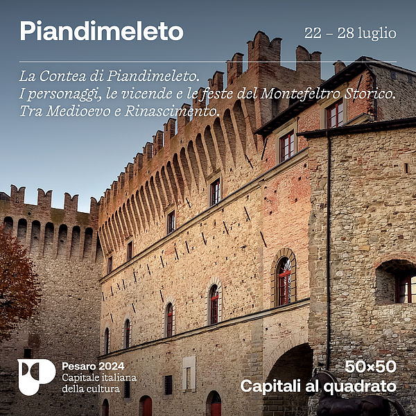 Dal 22 al 28 luglio è il Comune di Piandimeleto il nuovo protagonista di ‘50×50: Capitali al quadrato’, il progetto simbolo di Pesaro 2024 che vede i cinquanta Comuni della Provincia di Pesaro e Urbino, a turno, Capitale per una settimana lungo il 2024. Il programma – dal titolo “La Contea di Piandimeleto” – offre tante proposte con personaggi, vicende e feste del Montefeltro tra Medioevo e Rinascimento guidati dal fascino del “Palio Dei Conti Oliva”, giunto alla 41^ edizione.