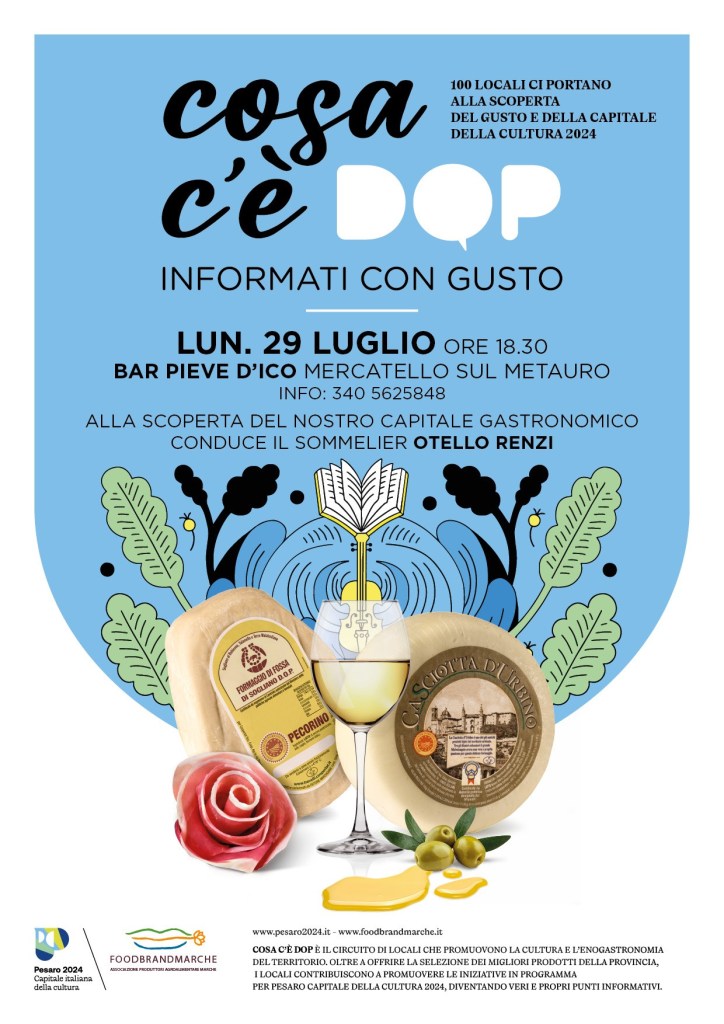 Sono due i locali che a Mercatello sul Metauro partecipano a “Cosa c’è Dop”, iniziativa firmata Pesaro 2024 e Food Brand Marche per far scoprire il nostro capitale gastronomico attraverso degustazioni Dop e assaggi guidati da esperti di formaggi, prosciutti, olio e vini.