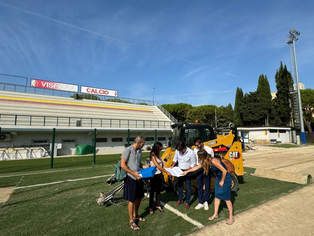 ampo da calcio di Vismara. Biancani, Della Dora, Pozzi: «Iniziati i lavori per ripristinare il campo e per evitare esondazioni del fosso della Badia»