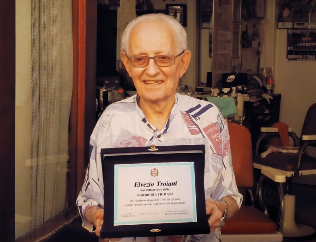 Inoltre, nel gennaio del 2023, il conte Alessandro Marcucci Pinoli gli aveva consegnato nella Galleria degli Specchi dell’Alexander Museum Palace Hotel il premio “Artigiano dell’anno”, in quanto veterano dei barbieri di Pesaro. Nell’attestatosi leggeva: “Stima e riconoscimento conferito al grande Elvezio Troiani, quale vero, ottimo e più unico che raro ’Artigiano’. Dal 1948 gestore della barbieria Troiani è davvero una bella persona, sempre un buon esempio di vita, e ha onorato Pesaro anche per la modestia, riservatezza, laboriosità, senso del dovere e solidarietà”. Il conte ha anche detto: “Ho avuto il piacere e l’onore di conoscere una famiglia eccezionale. Bravo il figlio Paolo, ma raramente ho visto una nuora tanto amorevole nei confronti del suocero”. Il conte ha coinvolto nell’occasione l’allora consigliere regionale Andrea Biancani, attuale sindaco di Pesaro, che ha aggiunto: “Sono stato contento di consegnare questo riconoscimento a Elvezio Troiani, di 94 anni. Un barbiere o meglio il barbiere. Lucido, allegro, vitale, che ama il proprio lavoro e la vita, Troiani è un esempio di resilienza e dedizione al proprio mestiere, lavorando incessantemente dal 1948 e mantenendo la barbieria sempre aperta senza mai appendere il cartello ‘chiuso per ferie’”. Biancani aveva poi condiviso un dettaglio della vita di Troiani, la sua passione per il ballo con la moglie, purtroppo scomparsa. “Da lui dobbiamo imparare che la felicità è stare bene ogni giorno con le persone a noi care”. Elvezio lascia il figlio Paolo e la nuora Fiorella. Il rosario si terrà domani sera alle 18,00 nella parrocchia di Villa Fastiggi, le esequie mercoledì mattina alle ore 10,00. Alla famiglia le condoglianze della nostra Redazione.