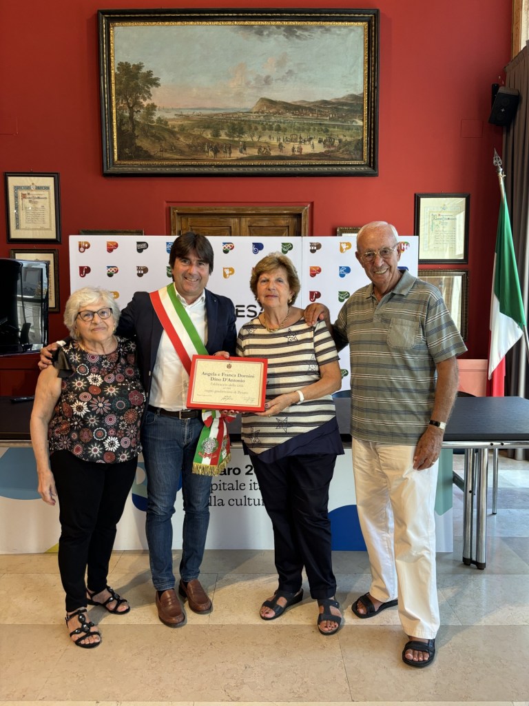«Angela, Franca e Dorino scelgono da decenni la nostra città per le sue bellezze, l’accoglienza e la tranquillità che sappiamo offrire. La loro è la storia di una bella famiglia unita che, da Melegnano, ha scelto Pesaro come meta estiva, diventata negli anni anche la loro seconda casa – ha sottolineato Biancani -. Un piccolo riconoscimento da parte della città che vi abbraccia e vi aspetta, ogni anno, con grande gioia».