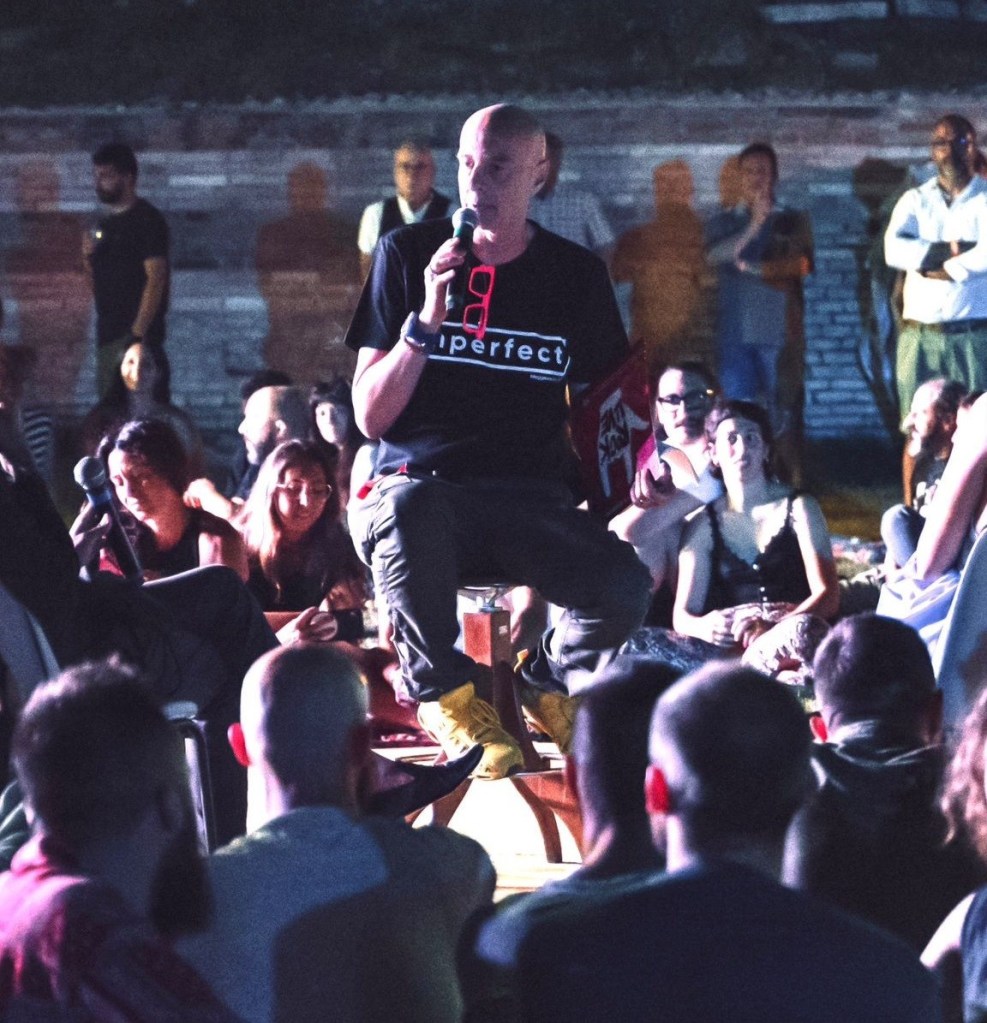 “La festa all’anfiteatro romano di Castelleone di Suasa è nata insieme a Massimo Cotto. Presente quando l’evento non era ancora firmato Rebel House al fianco dei The Fottutissimi e poi l’anno scorso con Morgan, Giorgio Canali ed altri amici, l’anfiteatro era già diventato casa sua. Il suo aiuto sincero, la sua presenza rassicurante, la sua voce giocosa e gentile, il suo entusiasmo hanno incantato il nostro pubblico. Quest’anno per la terza volta sarebbe stato con noi a coordinare questa edizione tutta al femminile, ma poi la vita ci ha regalato una brutta sorpresa. Dal profondo del cuore ci sentiamo quindi di omaggiare la sua persona con l’esposizione di alcuni maxi ritratti di #pictuersofyou il progetto che assieme allo stesso Massimo e al fotografo Henry Ruggeri avevamo messo in piedi da alcuni mesi per distribuirlo in Italia. Ancora per una volta Massimo sarà con noi.”