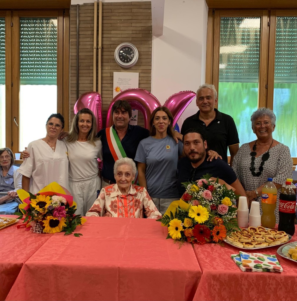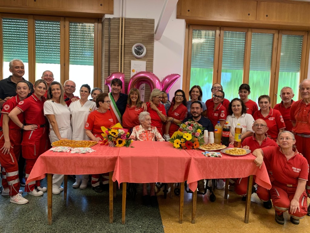 A stringersi vicino a Bianca, durante il pomeriggio, anche il nipote Franco Forlani, la tutrice Milena Signorotti, gli operatori della struttura e il direttore Giulio Giorgi, volontari di CRI Pesaro di tutte le età, compresa la 4enne Beatrice.