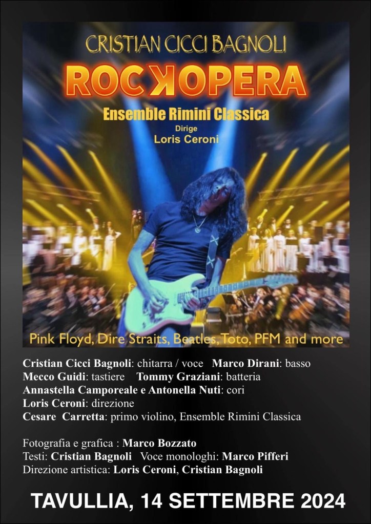 Una prima nazionale del grande cantante e chitarrista rock SABATO 14 SETTEMBRE A TAVULLIA ARRIVA IN PRIMA NAZIONALE LA GRANDISSIMA ROCKOPERA DI CRISTIAN CICCI BAGNOLI CON L’ENSEMBLE RIMINI CLASSICA DIRETTA DA LORIS CERONI.