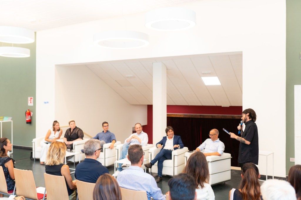 la traduttrice, Mary Hickson/creative producer & production manager TIN DRUM, Tomaso Cariboni/technical producer TIN DRUM, Daniele Vimini assessore alla cultura del Comune e presidente Fondazione Pescheria, il sindaco Andrea Biancani, Matteo Ricci eurodeputato, vicepresidente Commissione Tran, il moderatore Matteo Torterolo/Neo Studio Milano.