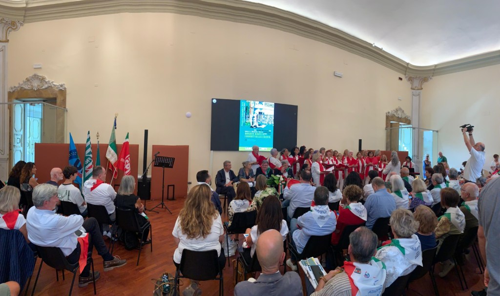 Dopo gli appuntamenti di ieri – la Commemorazione e ricordo dei due caduti a Pesaro della Banda Maiella,Giusto La Lia e Francesco di Lullo nel cimitero di Villa Fastiggi, l’inaugurazione della lapide a memoria delle giovani partigiane Leda Antinori e Magda Minciotti in piazzale Cadorna a Novilara, l’appuntamento “Spariamo nella luce dell’alba” nella corte Dario Fo e Franca Rame – oggi la giornata si è aperta con “Brigata Maiella, i Banditi della Libertà. Una banda partigiana tra Inglesi e Polacchi per la liberazione dell’Italia” evento a cura delle segreterie regionali pensionati SPI-CGIL, FNP-CISL, UILP-UIL in collaborazione con i licei artistici Nolfi-Apolloni e F. Mengaroni, dell’istituto comprensivo G. Gaudiano, dell’associazione Brigata Maiella e di Anpi provinciale che ha riempito, nella mattinata, il salone nobile “Antonia Pallerini” di Palazzo Gradari e la sala Rossa e del Consiglio comunale collegata in streaming.