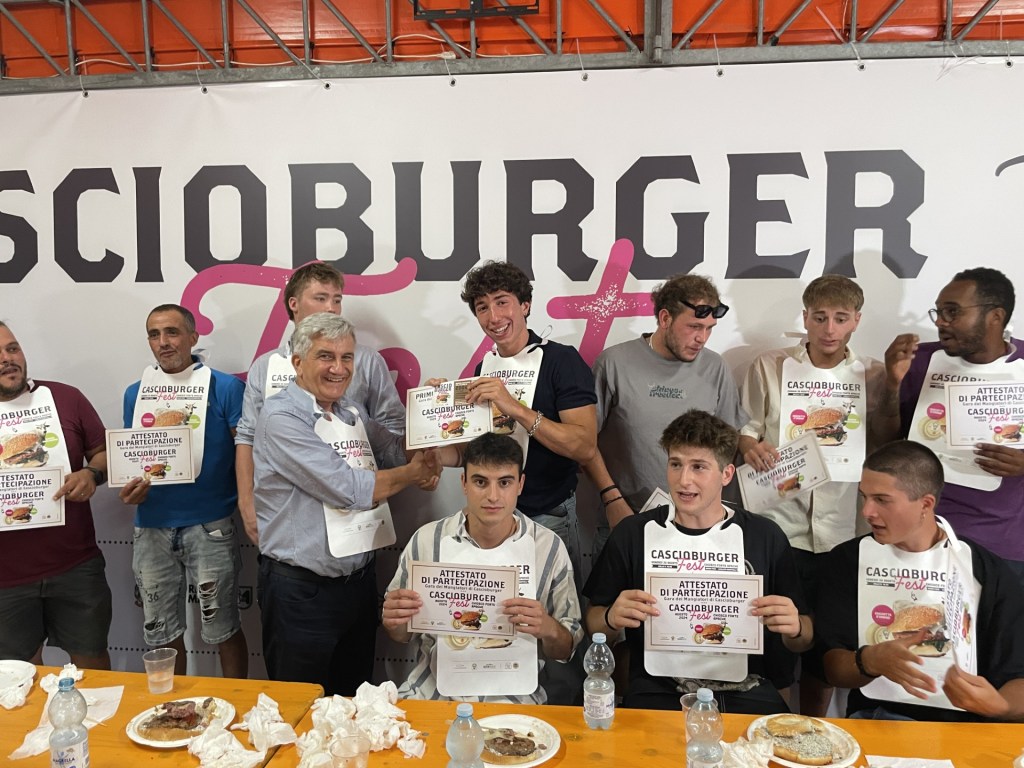 Leonardo Polverini di San Giustino (PG) vince la gara di mangiatori di mega cascioburger all’interno dellaprima edizione di Cascioburger Fest. Da un’idea diBovinmarche e del Consorzio Tutela Casciotta d’Urbino Dop, il Festival ha ospitato il primo evento dedicato a due eccellenze della nostra regione: la carne Bovinmarche e la Casciotta d’Urbino Dop. Un format azzeccatissimo: un mix tra cultura, gusto e divertimento per vivere un’esperienza di qualità nell’oasi naturale di Borgo Pace, dove ha sede il chiosco Forte Apache gestito da Valentina Marchetti. Ad attirare la curiosità dei visitatori è stata la gara di mangiatori di Cascioburger, che ha visto dieci giovani partecipanti. Tra questi, Polverini (20 anni) ha segnato il primo record: 1 chilo di cascioburger ingollato in 12 minuti. Il tempo massimo consentito dal regolamento della gara era di 25 minuti. Al vincitore 200 euro di buono spesa nel punto vendita del Consorzio di Fattorie Marchigiane (Colli al Metauro). Qualità, tipicità e territorialità sono gli ingredienti del Cascioburger realizzato con carne di Vitellone Bianco dell’Appennino centrale IGP e Casciotta d’Urbino Dop. Il format del Festival è stato ideato da Paolo Cesaretti, presidente del Consorzio della Casciotta d’Urbino DOP. La collaborazione con Bovinmarche non si è limitata al food, ma ha anche permesso l’allestimento di giochi educativi nell’area bambini, dove i più piccoli hanno potuto conoscere i segreti del Vitellone Bianco dell’Appennino IGP e ricevere tanti divertenti gadget. L’evento fa parte delle attività promozionale di Food Brand Marche, l’associazione dei Produttori dell’Agroalimentare delle Marche, nata per valorizzare in maniera integrata l’enogastronomia, il turismo e la cultura marchigiane, sia in Italia che all’estero.