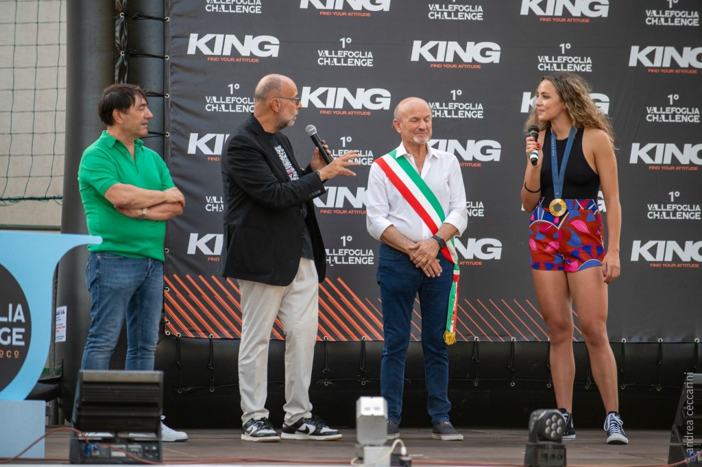Pomeriggio di gioia e commozione al Vallefoglia Challenge, la manifestazione in programma nel weekend nel piazzale antistante il PalaDionigi di Montecchio. Ospite d’onore la schiacciatrice della Megabox Ondulati del Savio Vallefoglia Gaia Giovannini, che è stata premiata dal Sindaco Palmiro Ucchielli ed ha poi rilasciato la sua prima intervista da campionessa olimpica: “Vengo da S. Giovanni in Persiceto, una cittadina di nemmeno 30.000 abitanti, e da lì ho cominciato a giocare a pallavolo. Poi dopo alcuni anni ho proseguito il mio percorso a Bologna. Poi sono passata alla Anderlini Modena, e da lì è cominciata la mia strada verso la serie A2 e poi la serie A1. Il mio sogno, come quello di qualsiasi giocatrice, è stato sempre arrivare a giocare in nazionale. Quello che è successo quest’anno è talmente grande che non potevo nemmeno immaginarlo, ma è un traguardo per il quale devo ringraziare tutti i miei allenatori, dai quali ho imparato tanto, e i miei genitori, che mi hanno sempre sostenuto. Sono molto contenta e orgogliosa del mio percorso”.
