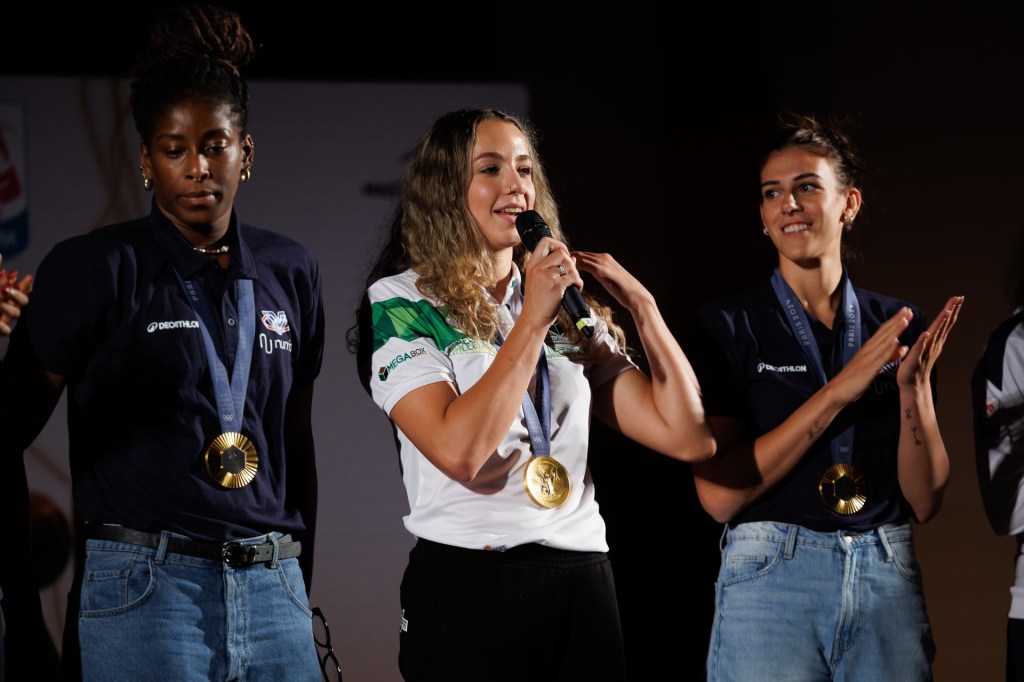 Prosegue la preparazione della Megabox Ondulati del Savio Vallefoglia in vista del prossimo campionato di serie A1. Domani, domenica 22 settembre alle 15.15 nella struttura sussidiaria di Palazzo Wanny, a Firenze, la squadra del presidente Ivano Angeli terrà un allenamento congiunto con le padrone di casa del Bisonte, reduci dalla vittoria del torneo McDonald svoltosi ad Imola la scorsa settimana. Saranno proprio le toscane le avversarie con cui la Megabox esordirà, nuovamente a Firenze, nella prima giornata di campionato il prossimo 6 ottobre. A questo proposito, la campagna abbonamenti per la stagione 2024/2025 è in pieno svolgimento su Liveticket (www.liveticket.it/evento.aspx?Id=504862). Il presidente Angeli e la medaglia d’oro olimpica Gaia Giovannini hanno partecipato venerdì alla presentazione della prossima stagione della Serie A Tigotà a Courmayeur.