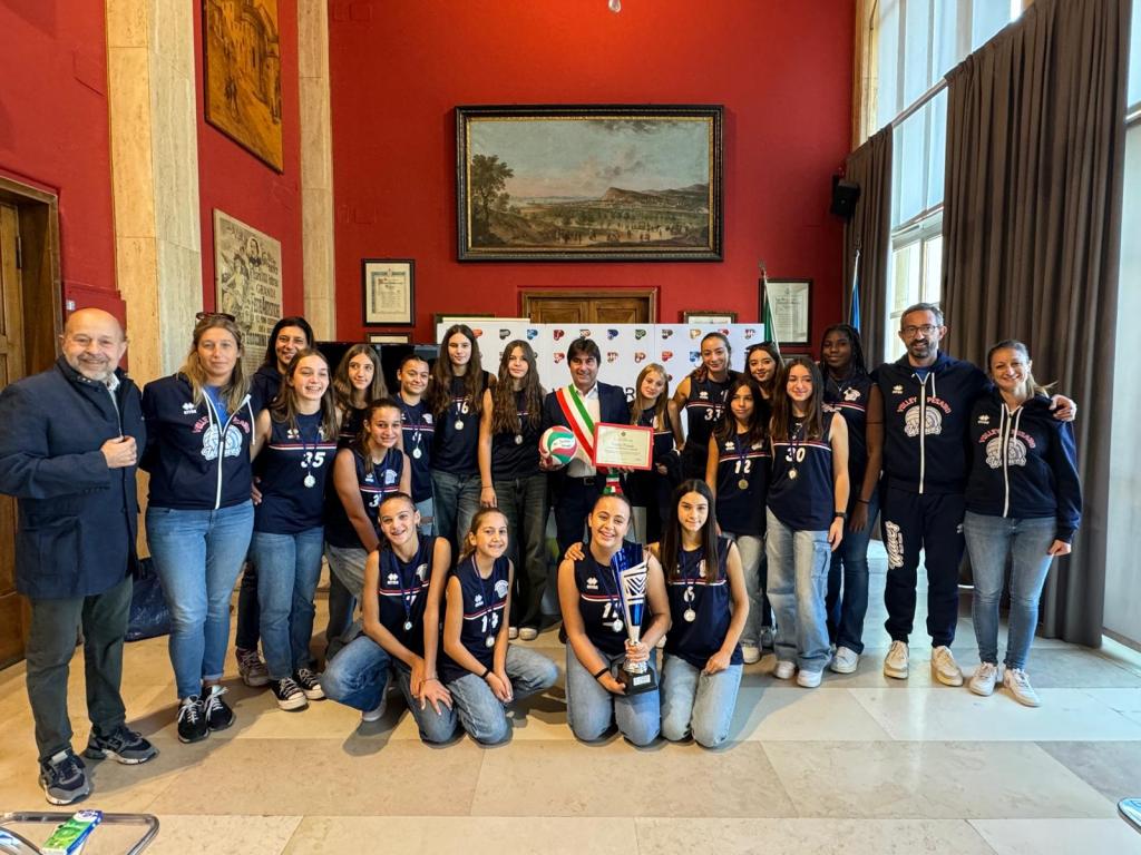 «Grazie al loro impegno, alla determinazione e alla dedizione hanno portato in alto i valori dello sport e il nome della città di Pesaro». Con queste motivazioni il sindaco Andrea Biancani ha premiato con il Plauso della Città le giovani atlete del Volley Pesaro, campionesse regionali U13 23/24.