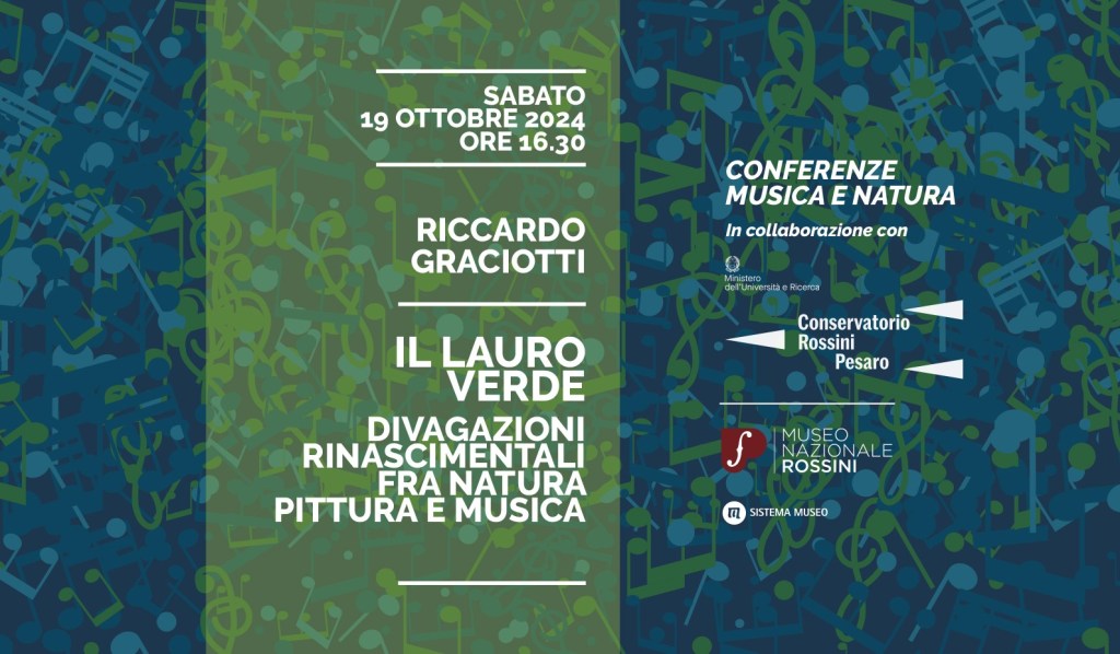 Dopo il successo del primo incontro “Odo augelli far festa”: il canto degli uccelli da Vivaldi a Messiaen, a cura della musicologa Mariateresa Storino, la seconda conferenza avrà come tema “Il lauro verde”: divagazioni rinascimentali fra natura pittura e musica, a cura del musicologo Riccardo Graciotti. Un tuffo nei secoli XV e XVI quando Natura, Musica e Pittura erano profondamente legate dall’idea di armonia universale, concetto filosofico che riesce a permeare le arti sensibili, assumendo la forma di metafora sia nel linguaggio visivo che in quello sonoro, in particolare nel madrigale, una delle forme musicali più rappresentative del periodo.