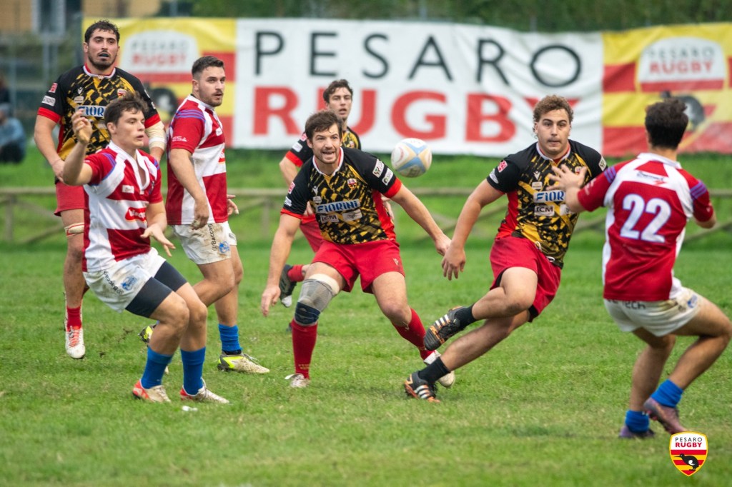 Pesaro Rugby: Joubert, Venturini G. (30’ st Cevolini), Paletta, Dell’Acqua R., De Angelis (25’ Santini), Azzolini, Boccarossa (30’ st Mattioli), Braim, Antonelli (cap.), Tontini (33’ pt Mey), Kone (24’ st Ruffini), Venturini L., Leva (25’ st Leali), Fenner (28’ st Sarpo), Dal Pozzo (37’ st Dell’Acqua F.).
