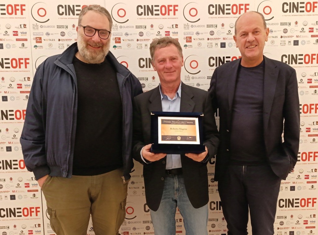 Il Premio Mestieri del Cinema 2024 è andato a Roberto Magrini, caposquadra elettricista. Magrini, figura notissima nel mondo del cinema marchigiano e non solo, è stato premiato dal responsabile CNA Cinema e Audiovisivo Marche, Claudio Salvi e dal portavoce dell’associazione che raggruppa imprese e professionisti del cinema, Alessandro Tarabelli.