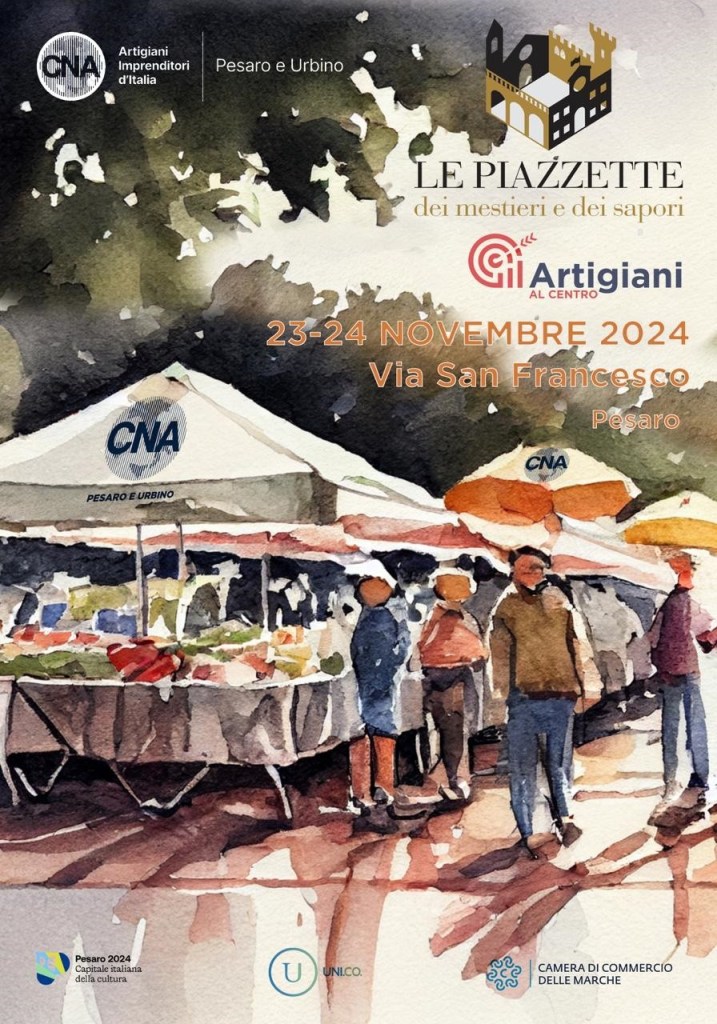 PESARO – Un week-end con protagonista il gusto e l’abilità degli artigiani delle Marche sabato 23 e domenica 24 ottobre in via San Francesco. Organizzata dalla CNA di Pesaro e Urbino e con il patrocinio e la collaborazione del Comune di Pesaro, Assessorato alle attività economiche, torna dopo il successo delle precedenti edizioni, l’iniziativa Artigiani al centro, realizzata con il sostegno della Camera di Commercio delle Marche e del Confidi Uni.co. che proporrà “Le piazzette dei Mestieri e dei Sapori” , format ideato da CNA Marche in collaborazione con CoopAgri, che prevede un mercatino di qualità lungo via San Francesco ed il loggiato del Palazzo Comunale in piazza del Popolo con una selezione della produzione enogastronomica e dei mestieri artigianali della regione. Artigiani del gusto e dei mestieri marchigiani che giungeranno in particolare dalla zona del cratere sismico, per esaltare il valore del fatto a mano, della manualità, dell’abilità artigiana.