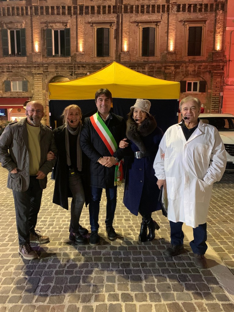 Farò Follie, con lo spettacolo “In allegria la meglio terapia”, ha presentato sketch ricchi di gag comiche, proposti a ritmo sostenuto e brillante dagli attori Ermes Oliva, Valter Alessi, Miriam Angelotti, Anna Renzi e Francesca Ciuffoli. «Una compagnia teatrale nata nel 2015 che sono molto felice si sia fatta conoscere anche tramite “Teatro in piazza”» ha detto il sindaco Biancani dando appuntamento al 30 novembre, alle ore 18, «sempre dal palco della Biosfera per l’accensione dell’albero, e della città, in vista delle festività natalizie».