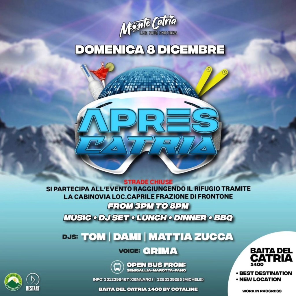 Torna ‘Apres Catria’. Dopo l’appuntamento di novembre, domenica 8 dicembre il bis nella meravigliosa cornice del comprensorio del monte Catria, reso ancor più suggestivo colorato di bianco.