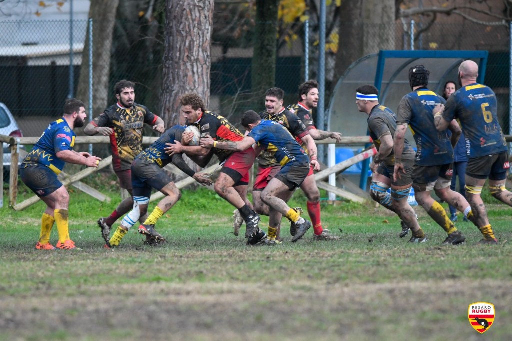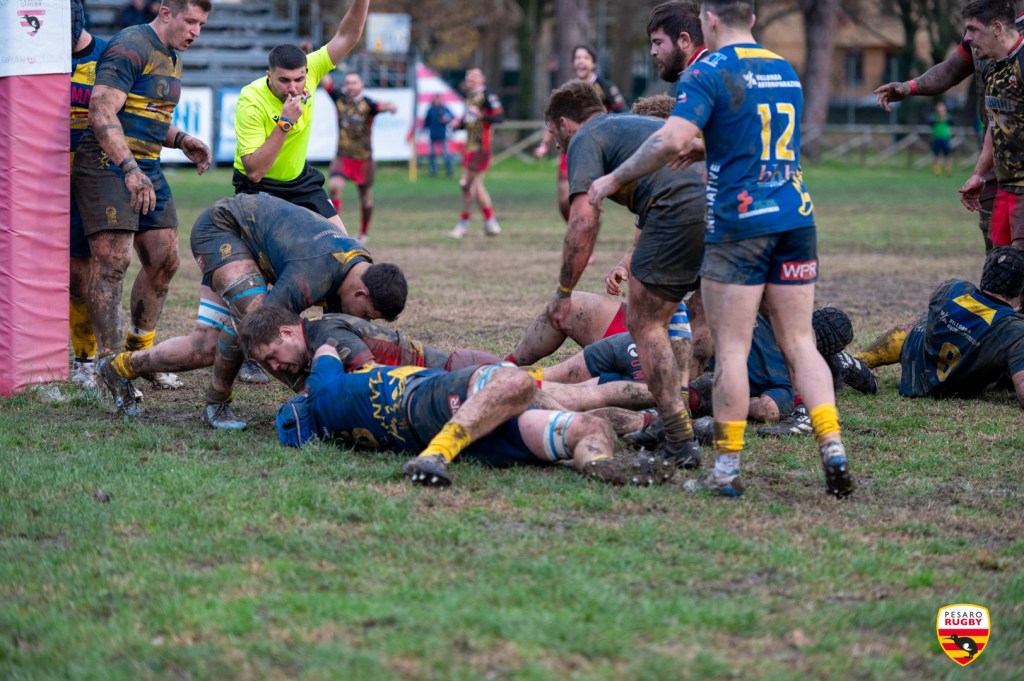 Una lotta nel fango quella andata in scena al Teknowool Rugby Park tra la Fiorini Pesaro Rugby e Omar Villorba, terminata per 13-10 a favore dei padroni di casa. Il campo pesante e la pioggia hanno reso il gioco difficile alle due formazioni.