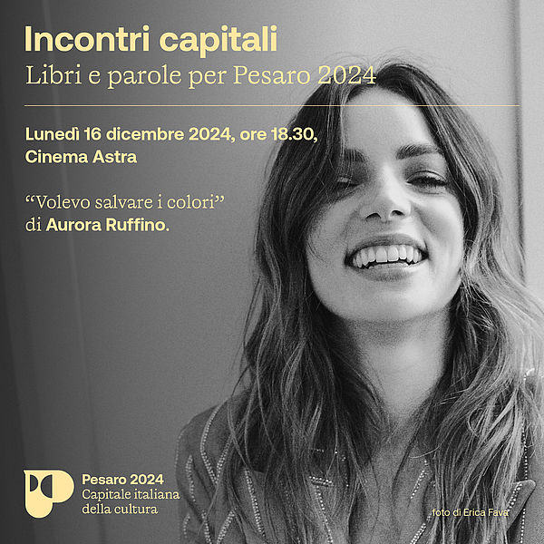 Gli ‘Incontri capitali’ di Pesaro Capitale italiana della cultura 2024 ci accompagnano anche nel mese di dicembre: lunedì 16 ospite della rassegna sarà l’attrice di ‘Braccialetti Rossi’ Aurora Ruffino che presenterà a Pesaro il suo primo romanzo ‘Volevo salvare i colori’ (Rizzoli) in dialogo con il consulente editoriale Antonino Di Gregorio (cinema Astra, ore 18,30 – ingresso gratuito).