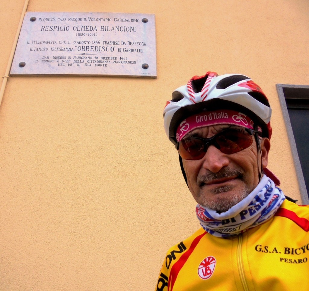 “Obbedisco” è il contenuto del telegramma scritto da Giuseppe Garibaldi, allora capo del Corpo Volontari Italiani, il 9 agosto 1866, in risposta al generale Alfonso La Marmora, che gli aveva intimato di fermare la sua avanzata verso Trento contro gli austriaci nella terza guerra di indipendenza. In questa casa di San Giovanni in Marignano (RN) nacque il volontario garibaldino Respicio Olmeda Bilancioni, il telegrafista che il 9 agosto 1866 trasmise da Bezzecca il famoso telegramma “OBBEDISCO” di Garibaldi.