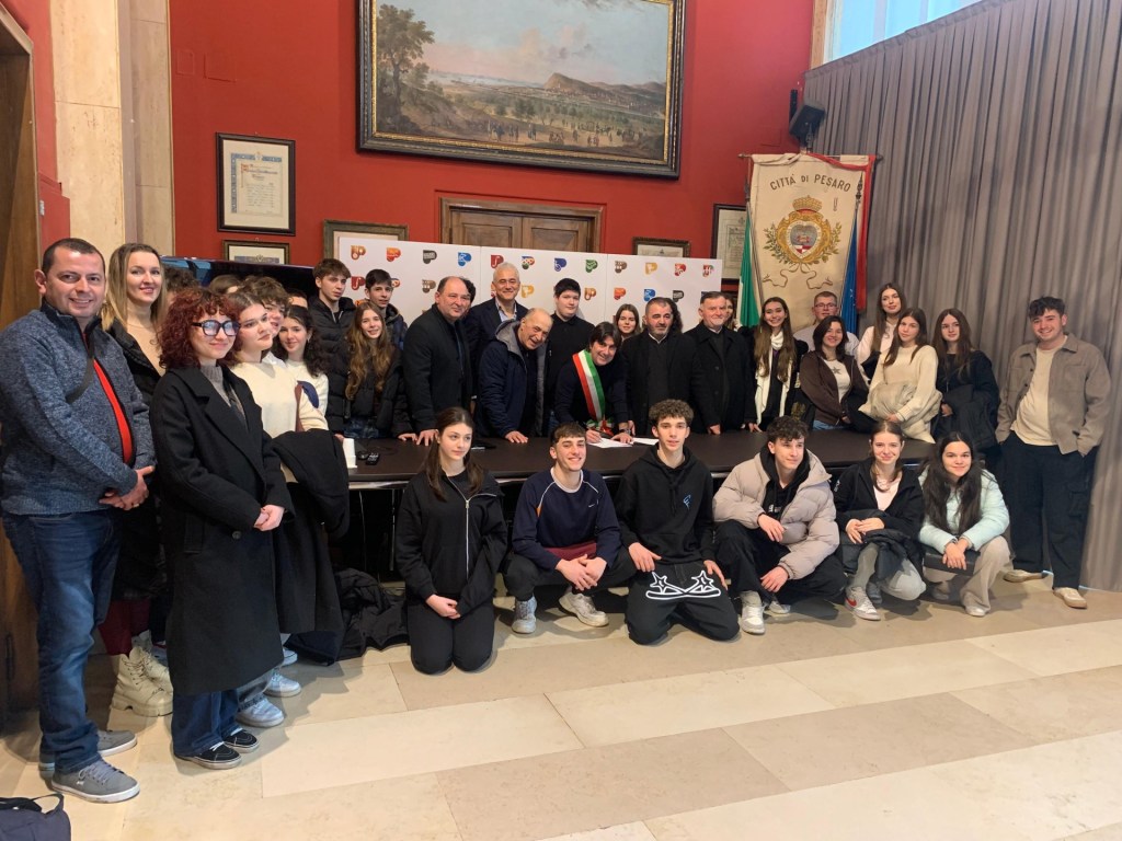 Presenti in Comune, 30 ragazzi di Resita che da oggi fino a domenica visiteranno il territorio (come hanno fatto 30 giovani pesaresi, che sono stati nella città rumena a novembre) e prenderanno parte alle iniziative della Diocesi, accompagnati, per la parrocchia pesarese, da don Giorgio Paolini e, per la delegazione rumena, da padre Nicolae Chiosa, ispettore regionale per la religione in Romania, da Petru Belciu, vice ispettore regionale per la religione in Romania e da padre Damaschin.